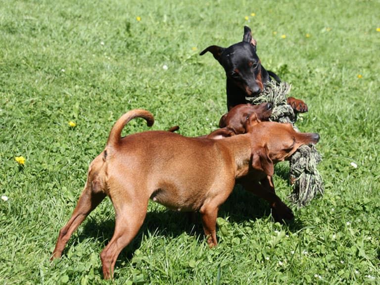 Die Rangordnung wird angetestet, es wird geknurrt, die Zähne gezeigt und deutlich darauf hingewiesen, dass „Knirps“ diesen Besitz nicht freiwillig rausrücken wird.